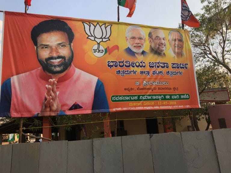 कर्नाटक 2018 स्वयं को इबारतों की यात्रा के रूप में खुद को प्रस्तुत नहीं करता है। दशकों से अब तक मैंने जितने भी चुनाव देखे हैं किसी भी चुनाव को मैंने इतने कम प्रदर्शन के साथ नहीं देखा, न कोई पोस्टर, न बैनर, न ही झंडे और न ही होर्डिंग या बिल्ले। यह सब आपको तब तक नहीं दिखाई देंगे जब तक आप इस चुनावी राज्य में राजमार्गों और राज्य के अंदरूनी हिस्सों में लगभग 2000 किलोमीटर की ड्राइविंग करने के बाद आंध्र प्रदेश की सीमा से लगे बल्लारी (पहले बेल्लारी) के उत्तर-पूर्वी भाग में नहीं पहुँच जाते ।