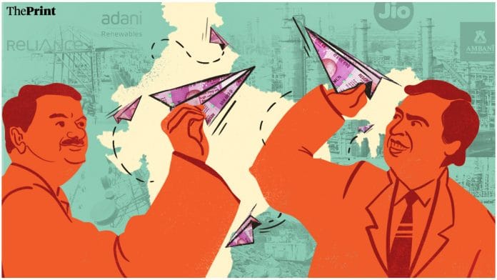 अंबानी ने पेट्रो-रसायन और पेट्रोलियम, टेलिकॉम, ऑनलाइन प्लेटफॉर्म, संगठित खुदरा व्यपार और मनोरंजन के सेक्टरों में वर्चस्व स्थापित करने पर ज़ोर दिया है. तेजी से तरक्की कर रहा अडानी समूह देश में कोयले का सबसे बड़ा आयातक है, बिजली और सौर ऊर्जा के सेक्टर में निजी क्षेत्र का सबसे बड़ा खिलाड़ी है और अब वह भारत में बंदरगाहों और हवाई अड्डों का सबसे बड़ा मालिक है. दोनों समूहों ने एक-दूसरे का रास्ता काटने की कोशिश नहीं की है लेकिन ‘ग्रीन एनर्जी’ के क्षेत्र में अपना वर्चस्व बनाने की घोषणा करके टक्कर में आने का फैसला कर लिया है. दोनों को सरकार में बड़ी पैठ रखने के लिए जाना जाता है. कई प्रतियोगी उनके रथों के पहियों के नीचे आ चुके हैं.