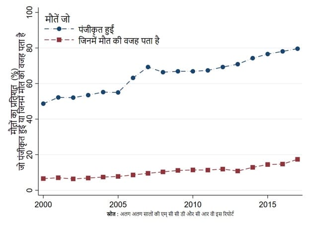 आखिरकार, इन प्रयोगशालाओं और अस्पतालों से मिले डाटा पर इसलिए नहीं निर्भर रहा जा सकता क्योंकि कुछ ही लोग इन तक पहुंच पाते हैं. इसी वजह से एक मृत्यु पंजीकरण का पूरा होना और समय पर उसके नतीजे निकालना बहुत ज़रूरी है. मृत्यु पंजीकरण सिस्टम में सभी मृत्यु की जानकारी जाती हैं, बस कुछ बीमारियों की नहीं. मौत के कारण की जानकारी जिस हद तक उपलब्ध है, वो इस सिस्टम में नोट की जा सकती है. जानकारी इकट्ठा करना और नोट करना आसान है – किसी प्रयोगशाला की तरह तकनीकी जानकारी और उपकरण की ज़रूरत नहीं है. और यह सार्वजनिक होता है – किसी की भी मौत की जानकारी दी जा सकती है, बिना किसी परेशानी के. एक भरोसेमंद मृत्यु पंजीकरण प्रणाली वहां संसाधन भी पहुंचाती हैं जहां जरूरत होती है. सिर्फ वहां नहीं अस्पताल और लैब्स हों.