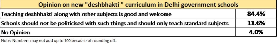 सर्वे किए गए परिवारों के 84 प्रतिशत सदस्यों ने इस बात का अनुमोदन किया, कि सरकारी स्कूलों में उनके बच्चों को नया ‘देशभक्ति’ पाठ्यक्रम पढ़ाया जाए. दिल्ली सरकार के अधिकारियों और आम आदमी पार्टी (आप) के सदस्यों के लिए, शायद इसमें कोई आश्चर्य नहीं है.