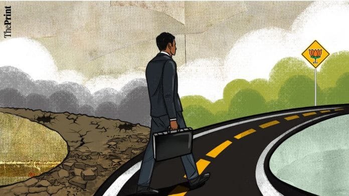 भारतीय व्यवसाय जगत के परिदृश्य का विरोधाभास आज यह है कि भाजपा की चुनावी जीत पर शेयर बाजार जबकि खूब जश्न मना रहा है, लेकिन कई व्यवसायी केंद्र में भाजपा की सरकार से डरे हुए हैं. 4 साल पहले राहुल बजाज (अब दिवंगत) ने गृहमंत्री अमित शाह से कहा था कि उद्योगपति सरकार की आलोचना करने से डरते हैं क्योंकि उन्हें डर है कि “इसको ठीक नहीं मान जाएगा”. बजाज ने यह भी कहा था कि उनके उद्योगपति मित्रों में से कोई भी इस बात को कबूल करने की हिम्मत नहीं करेगा. उन्होंने इस स्थिति की तुलना मनमोहन सिंह सरकार के दिनों से की थी, जब कोई भी सरकार की आलोचना खुलकर कर सकता था.