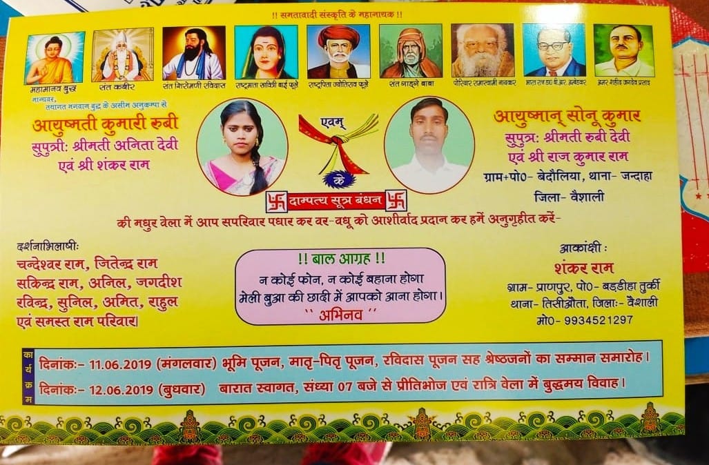 स्थानीय लोगों का कहना है कि पिछले कुछ सालों में क्षेत्र में भीम आर्मी सेना का प्रभाव बढ़ा है, जिससे धार्मिक कर्मकांडों का स्वरूप भी बदलने लगा है. यही नहीं हाल के वर्षों में शादी के लिए छपनेवाले निमंत्रण कार्डों की शक्ल में भी बदलाव