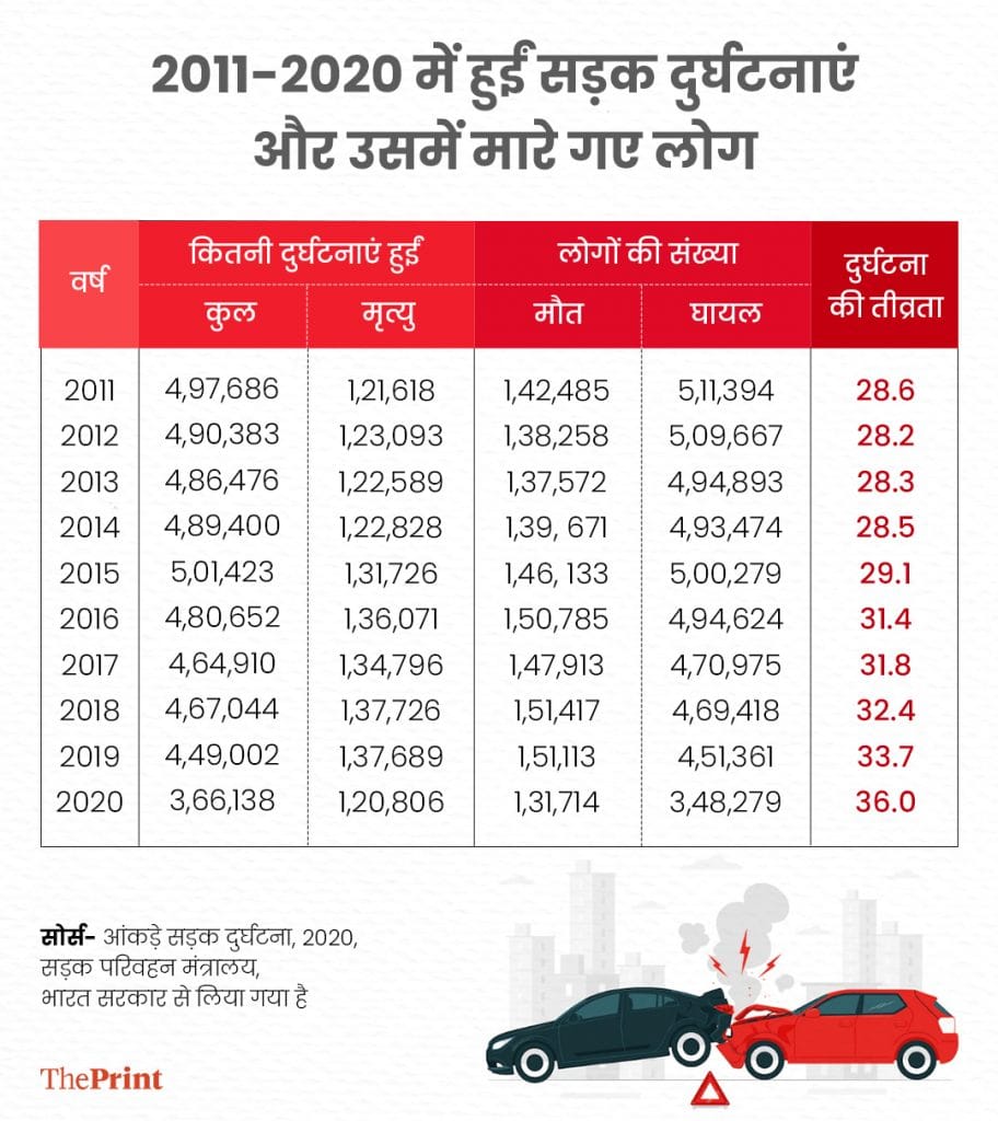 अगर उपरोक्त आंकड़ों की बात करें तो पाएंगे कि देश में सड़क हादसों में 2020 के साल को छोड़ दिया जाए तो कोई उल्लेखनीय कमी नहीं आई है. 2020 का आंकड़ा मानक नहीं मान जा सकता है क्योंकि इस साल कोरोना के कारण देश के सभी हिस्सों में बहुत समय तक यातायात बाधित रहा. यहां गौर करने लायक बात यह है कि सड़क दुर्घटना की विभीषिका में लगातार इजाफा हो रहा है, उसमें कोई कमी नहीं दिख रही है. इसका अर्थ यह भी है कि या तो दुर्घटनाएं भीषण हो रही हैं या दुर्घटना के बाद पर्याप्त उपचार नहीं मिल रहा है.