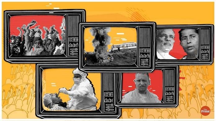 पूरे साल इन प्रदर्शनों को चैनलों में काफी कवरेज मिला, भारतीय किसान यूनियन के राकेश टिकैत वर्ष के अप्रत्याशित टीवी स्टार बनकर उभरे मगर कई चैनलों ने किसानों के चरित्र हनन का रुख अपनाया, कृषि कानूनों या हालात से निपटने के मोदी सरकार के तौर-तरीकों की बात करने के बदले किसानों के प्रदर्शन से आने-जाने वालों और स्थानीय लोगों की असुविधाओं को बताया (जो कुछ हद तक सही भी था).