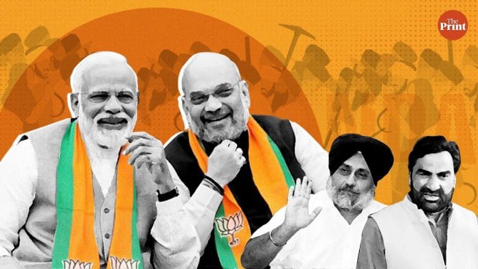 1996 के बाद से, जब अकाली दल ने पहली बार अटल बिहारी वाजपेयी सरकार का समर्थन किया था, पंजाब में गठबंधन में उसकी हैसियत हमेशा बड़े भाई की रही और भाजपा ने राज्य की 13 लोकसभा सीटों में से 3 और 117 विधानसभा सीटों में से 23 पर चुनाव लड़ा. यह हमेशा से एक गैरबराबरी वाला गठबंधन था. और वैसे भी मोदी की भाजपा अपने अलग रास्ते की संभावनाएं तलाश रही थी. महाराष्ट्र में शिवसेना के साथ ब्रेकअप जल्दी ही होने वाला था. मोदी की अगुआई वाली पार्टी को अब एक क्षेत्रीय दल के साथ अपना हिंदुत्व समर्थक वर्ग साझा करने की आवश्यकता नहीं रह गई थी.