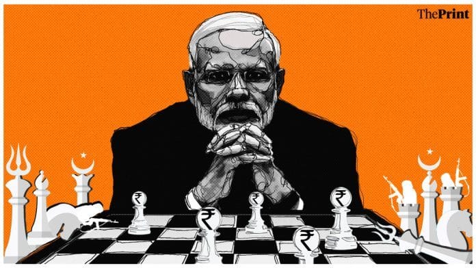 एक बार तो मतदाता को यह विश्वास दिला दिया गया कि सत्तर वर्षों से भारत के वजूद को पाकिस्तान से खतरा बना रहा लेकिन किसी ने इसका कुछ नहीं किया और अब अंततः नरेंद्र मोदी इस समस्या को निबटा रहे हैं. ऐसा वे मुख्यतः ‘निर्णायक, प्रतिकारक और निडर’ फौजी कार्रवाई के जरिये कर रहे हैं. और इसी के साथ पाकिस्तान को दुनिया में ‘अलगथलग’ करते हुए वे भारत की वैश्विक हैसियत को ऊपर उठा रहे हैं. ऐसी बातों पर जब पर्याप्त तादाद में मतदाता एक बार यकीन करने लगते हैं तब वे दूसरी पारंपरिक सियासी वफ़ादारियों और समीकरणों को भूल जाते हैं.
