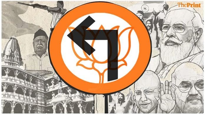 पिछले सात साल से, जबसे मोदी-शाह की भाजपा सत्ता में है, इस पार्टी को और इसके पीछे चल रही वैचारिक ताकतों को व्यापक तौर पर ‘दक्षिणपंथी’ ही माना जाता है. लेकिन हमें यह जांचना होगा कि क्या यह तथ्यात्मक रूप से सही है. इसलिए तैयार हो जाइए. मैं यह तर्क रखने जा रहा हूं कि मोदी और उनकी भाजपा आज हिंदुत्ववादी दक्षिणपंथी राष्ट्रीय ताकत का नहीं बल्कि वामपंथी हिंदुत्ववाद का प्रतिनिधित्व करती है.