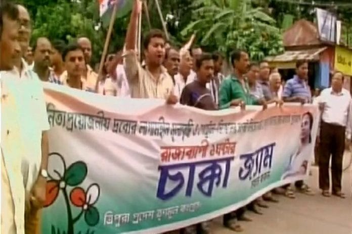 सुबल भौमिक के नेतृत्व में टीएमसी कार्यकर्ता शुक्रवार रात को धर्मनगर के बटारसी इलाके में भगवा पार्टी के कार्यकर्ताओं द्वारा टीएमसी के एक पार्टी कार्यालय में कथित तौर पर तोड़फोड़ का विरोध कर रहे थे.
