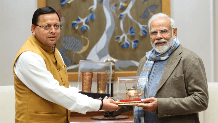 नई दिल्ली: मुख्यमंत्री पुष्कर सिंह धामी ने गुरूवार को नई दिल्ली में प्रधानमंत्री नरेन्द्र मोदी से शिष्टाचार भेंट की. इस अवसर पर मुख्यमंत्री ने प्रधानमंत्री को बागेश्वर में बने ताम्र शिल्प पर आधारित उत्पाद तथा उत्तराखंड की महिला स्वयं सहायता समूहों द्वारा तैयार की गई सामग्री भेंट की. प्रधानमंत्री ने राज्य की महिलाओं के प्ररिश्रम की सराहना की तथा उनका आभार व्यक्त किया.