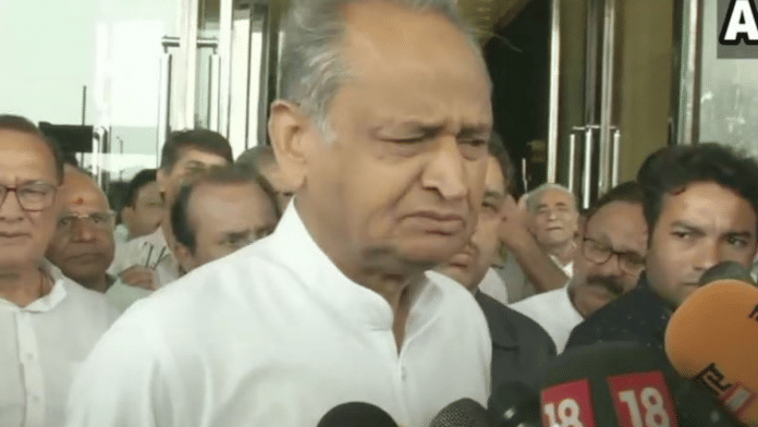 राजस्थान के बाहरी उम्मीदवारों को कांग्रेस द्वारा चुनाव में उतारे जाने को मुद्दा बनाये जाने के सवाल पर गहलोत ने कहा, ‘आज जो हालात है.. पूरा देश चिंतित है.. तनाव में, हिंसा में है, ऐसे माहौल में तीन वरिष्ठ नेताओं को अगर बदला गया है तो सोच समझ कर किया गया है, पार्टी के हित में किया गया है.’