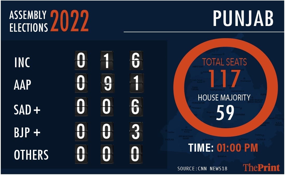 1:14 PM: पंजाब के 1 बजे तक के रूझान