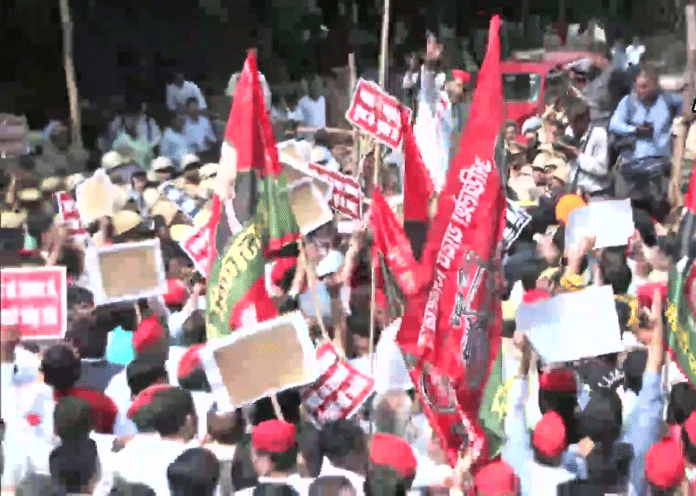 नई दिल्ली: उत्तर प्रदेश की राजधानी लखनऊ में विधानसभा में बड़ी संख्या में सुरक्षाकर्मियों को तैनात किया गया था क्योंकि समाजवादी पार्टी (सपा) ने सोमवार को विभिन्न मांगों को लेकर योगी सरकार के खिलाफ विरोध मार्च निकाला. सपा प्रमुख अखिलेश यादव और पार्टी के कई विधायकों और नेताओं ने सोमवार को राज्य विधानमंडल के मानसून सत्र से पहले राज्य में महंगाई के मुद्दों को उजागर करते हुए पार्टी कार्यालय से विधानसभा तक मार्च का नेतृत्व किया.