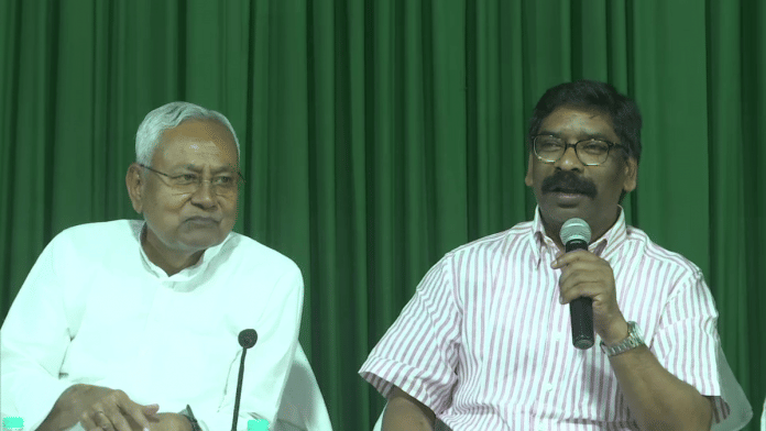 हमने आज विभिन्न मुद्दों पर चर्चा की और इस बात पर सहमत हुए कि हम देश के हित के लिए एकजुट होकर काम करेंगे: झारखंड के मुख्यमंत्री हेमंत सोरेन के साथ बिहार के मुख्यमंत्री नीतीश कुमार, रांची pic.twitter.com/GU5gSwXOHA