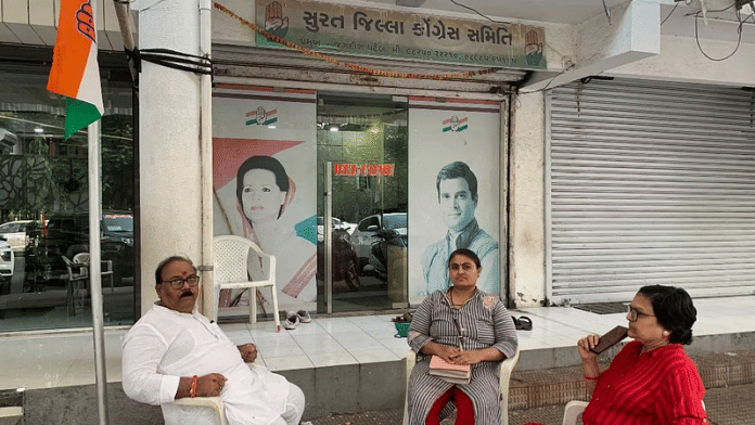 अहमदाबाद/सूरत: कड़क सफेद कुर्ता पायजामा पहने संजय पटवा शुक्रवार शाम सूरत के अदजान स्थित कांग्रेस दफ्तर के बाहर प्लास्टिक कुर्सी पर काफी शांति के साथ बैठे नजर आए. उसी सुबह, पटवा ने सूरत पश्चिम निर्वाचन क्षेत्र से बतौर कांग्रेस प्रत्याशी अपना नामांकन भरा था. राज्य के कैबिनेट मंत्री पूर्णेश मोदी की यह सीट भाजपा का गढ़ मानी जाती है.