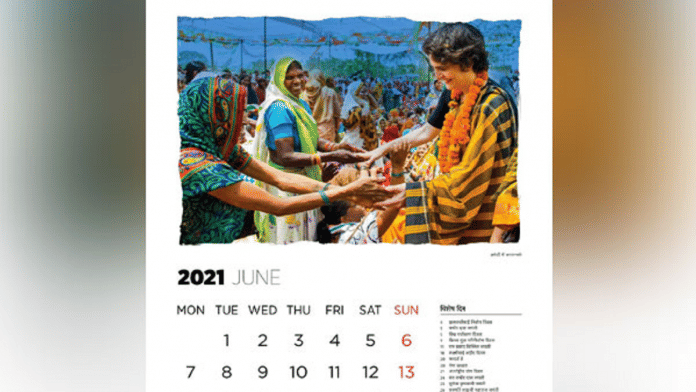 कुमार ने बताया कि इसके अलावा कैलेंडर में अमेठी और रायबरेली के साथ-साथ हरियाणा और झारखंड में प्रियंका द्वारा किए गए जनसंपर्क की तस्वीरें छापी गई हैं.