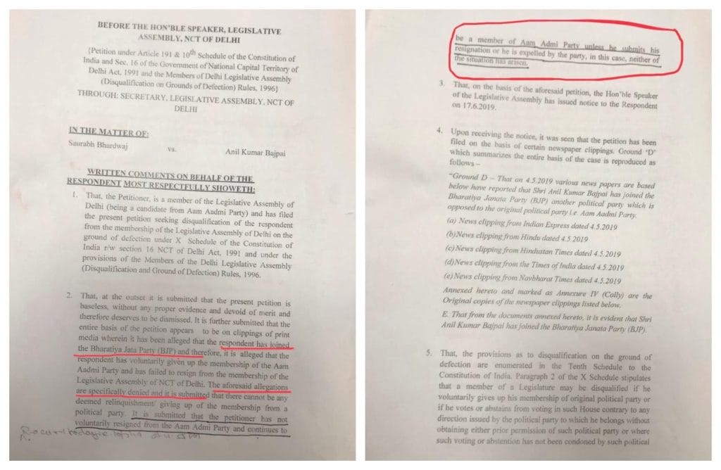 सौरभ भारद्वाज इसी रिपोर्ट का हवाला देकर दोनों विधायकों के दल बदलने की शिकायत विधानसभा अध्यक्ष से की गई है, जिसकी जांच जारी है. भारद्वाज की शिकायत के जवाब में इन दोनों ही नेताओं ने विधानसभा अध्यक्ष को शपथ पत्र देकर अपने को ‘आप’ का विधायक बताया है. साथ ही दलील दी है कि समाचार पत्रों और टीवी न्यूज़ चैनलों में चली ख़बरें झूठी और भ्रामक हैं.