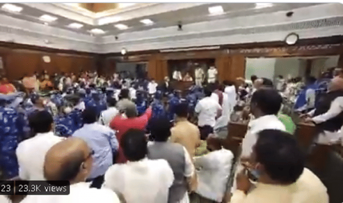 गौरतलब है कि पुलिस बल को कथित तौर पर बगैर वारंट की गिरफ्तारी की शक्ति देने वाला एक विधेयक नीतीश कुमार सरकार के बिहार विधानसभा में पेश करने के बाद मंगलवार को सदन में अभूतपूर्व स्थित देखने को मिली. विधानसभा अध्यक्ष के कक्ष का घेराव करने वाले विपक्ष के विधायकों को हटाने के लिए सदन में पुलिस बुलानी पड़ गई.