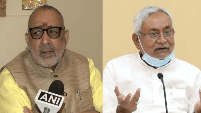 नई दिल्ली: केंद्रीय मंत्री गिरिराज सिंह ने बुधवार को बिहार के मुख्यमंत्री नीतीश कुमार की आलोचना की और शराब माफियाओं द्वारा मंगलवार को पुलिस टीम पर किए गए हमले के लिए उनकी शराबबंदी को जिम्मेदार ठहराया, जिसमें एक पुलिस निरीक्षक की मौत हो गई.