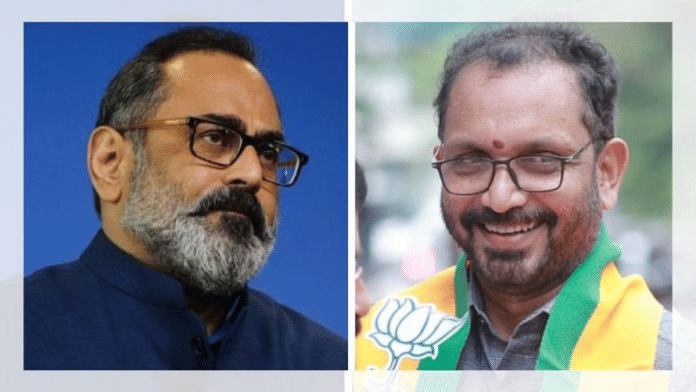 मार्च में नियुक्त हुए राजीव चंद्रशेखर फिलहाल राज्य में केवल विकास के वादे के साथ पार्टी का प्रचार कर रहे हैं.