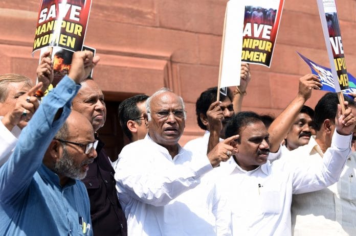 कांग्रेस और विपक्षी गठबंधन ‘इंडिया’ (इंडियन नेशनल डेवलपमेंटल इन्क्लूसिव अलायंस) के अन्य घटक दल मानसून सत्र के पहले दिन से ही मणिपुर में जातीय हिंसा के मुद्दे पर प्रधानमंत्री नरेन्द्र मोदी से संसद में वक्तव्य देने और चर्चा कराए जाने की मांग कर रहे हैं. इस मुद्दे पर हंगामे के कारण दोनों सदनों में कार्यवाही बाधित रही है.