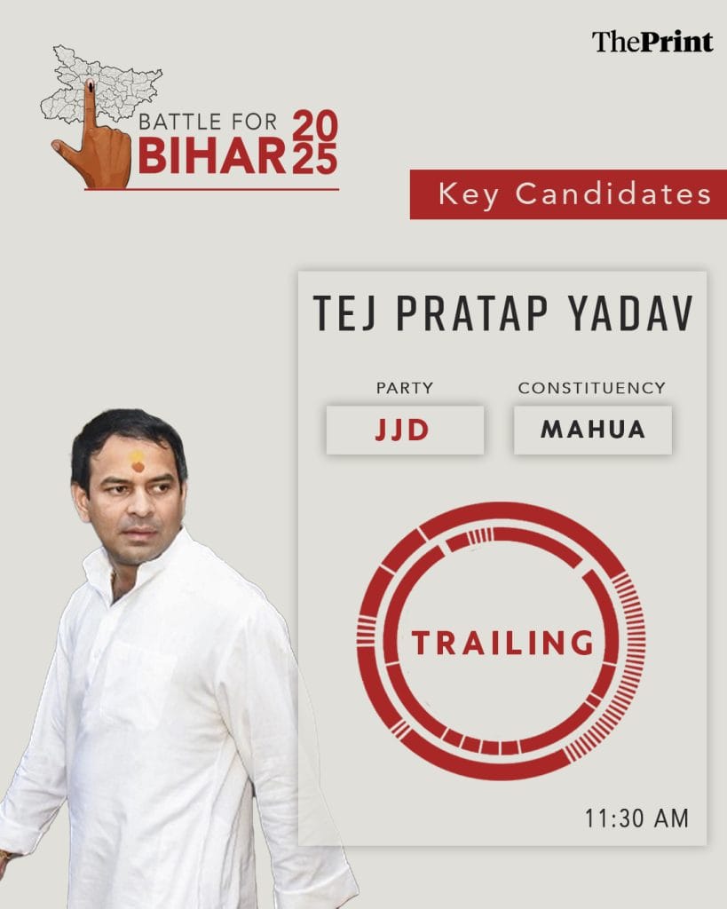 यह भी पढ़ें: बिहार चुनाव: महुआ में तेज प्रताप यादव चौथे नंबर पर, LJP (RV) उम्मीदवार आगे