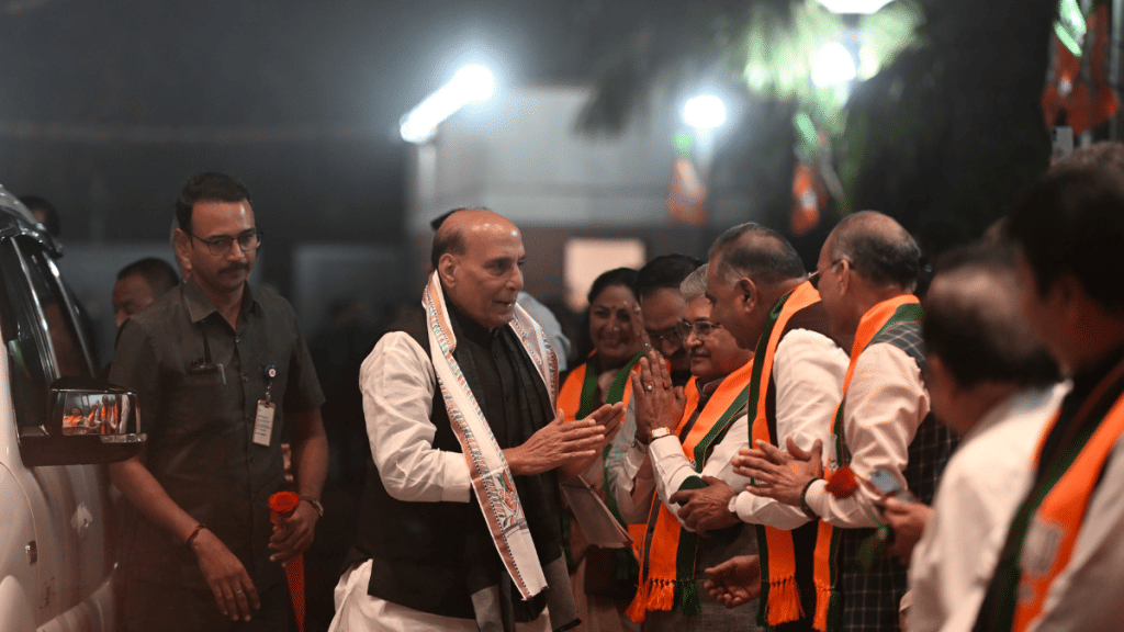 रक्षा मंत्री राजनाथ सिंह ने “बिहार के लोगों” और बीजेपी कार्यकर्ताओं को NDA की “भव्य और अभूतपूर्व” जीत पर बधाई दी.