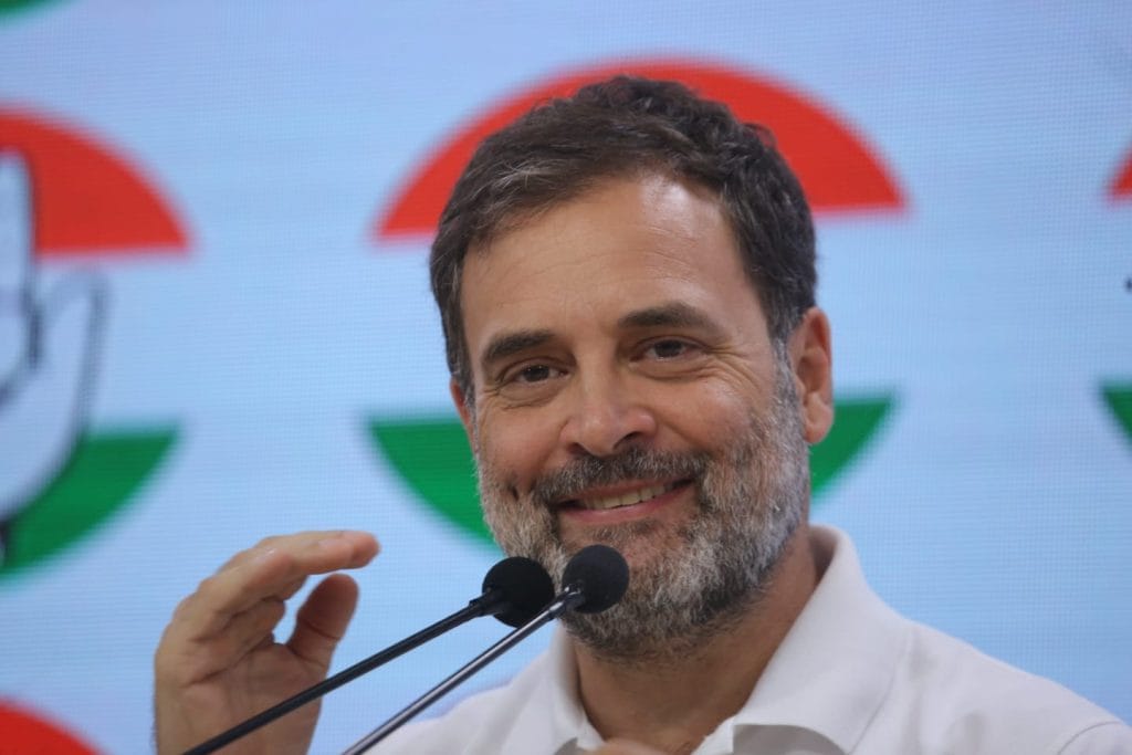 प्रेस कॉन्फ्रेंस के दौरान कांग्रेस नेता राहुल गांधी