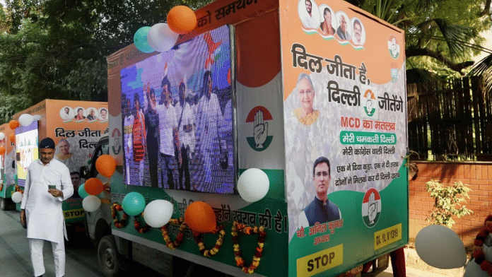 नई दिल्ली: जहां एमसीडी चुनावों के लिए भाजपा और आम आदमी पार्टी ने स्टार प्रचारकों की परेड निकाली, साफ-सफाई एवं भ्रष्टाचार के मुद्दों पर एक दूसरे पर वार किया, वहीं कांग्रेस का अभियान इन दोनों पार्टियों के मुकाबले थोड़ा फीका ही रहा. पार्टी का पूरा दारोमदार प्रत्येक वार्ड के लिए तैयार किए गए ‘पर्सनलाइज्ड मेनिफेस्टो’ पर रहा है.