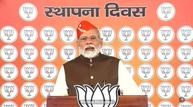 भारतीय जनता पार्टी (भाजपा) के 42वें स्थापना दिवस के मौके पर वीडियो कांफ्रेंस के माध्यम से पार्टी कार्यकर्ताओं को संबोधित करते हुए मोदी ने यह बात कही.