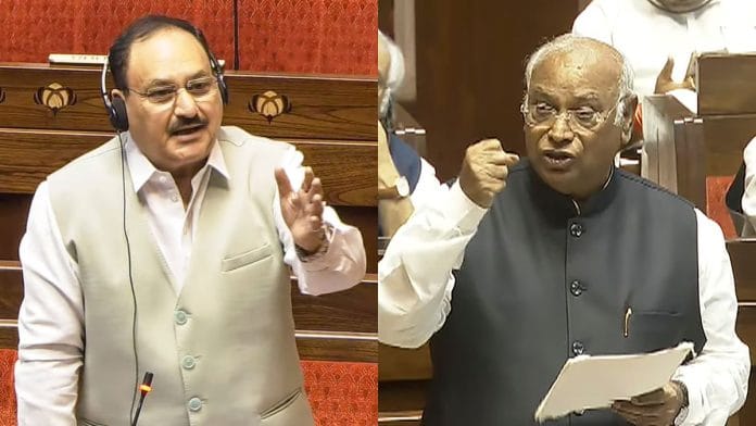 नई दिल्ली: राज्यसभा में मंगलवार को ऑपरेशन सिंदूर पर हुई विशेष चर्चा के दौरान सत्ता पक्ष और विपक्ष के बीच जमकर बहस हुई. बहस उस समय गरमा गई जब सदन में नेता और बीजेपी अध्यक्ष जे.पी. नड्डा तथा विपक्ष के नेता मल्लिकार्जुन खरगे के बीच तीखी जुबानी जंग हो गई.