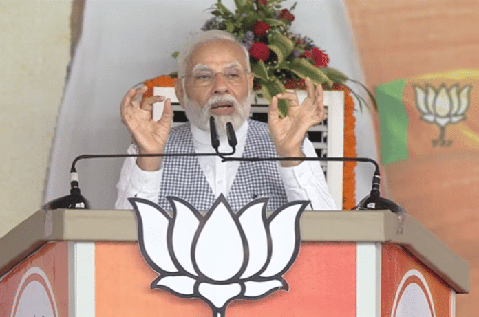पीएम ने कहा, ‘छत्तीसगढ़ के विकास के सामने एक बहुत बड़ा पंजा दीवार बनकर खड़ा हो गया है. ये कांग्रेस का पंजा है, जो आपसे आपका हक छीन रहा है. इस पंजे ने ठान लिया है कि वह छत्तीसगढ़ को लूट-लूट कर बर्बाद कर देगा.”