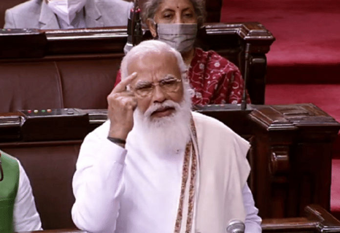 सदन में पूर्व प्रधानमंत्री मनमोहन सिंह का उद्धरण पढ़ते हुए प्रधानमंत्री मोदी ने कहा, ‘हमारी सोच है कि बड़ी मार्केट को लाने में जो अड़चने हैं, हमारी कोशिश है कि किसान को उपज बेचने की इजाजत हो.’ प्रधानमंत्री ने कांग्रेस पर निशाना साधते हुए कहा, ‘जो मनमोहन सिंह ने कहा वो मोदी को करना पड़ रहा है, आप गर्व कीजिए.’