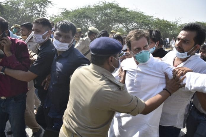 राहुल गांधी को जब हिरासत में लिया गया तो उन्होंने वहां मौजूद पुलिस अधिकारी से पूछा कि वह ‘अकेले हाथरस जाना चाहते हैं उन्हें क्यों रोका जा रहा है.’ उसी दौरान पुलिस ने प्रियंका और राहुल को जीप में बैठा लिया जिसके बाद कार्यकर्ता बेकाबू हो गए.