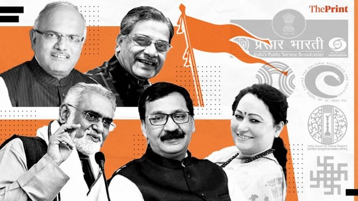 वहीं,संस्कृति मंत्रालय की प्रमुख संस्थाएं इंदिरा गांधी राष्ट्रीय कला केंद्र, ललित कला अकादमी और सांस्कृतिक स्त्रोत एवं प्रशिक्षण केंद्र के प्रमुख पदों पर राष्ट्रीय स्वंय संघ की सिफारिश के लोग बैठाए गए है.