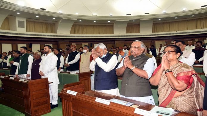 सोमवार पूर्वाह्न 11 बजे जैसे ही सदन की कार्यवाही शुरू हुई विपक्षी पार्टियों खासतौर पर राष्ट्रीय जनता दल (राजद) के सदस्य आसन के सामने आ गए और भारतीय जनता पार्टी (भाजपा) विधायक हरिभूषण ठाकुर बचौल के निलंबन की मांग करने लगे.