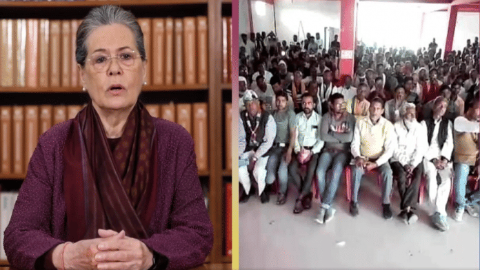 कांग्रेस अध्यक्ष सोनिया गांधी ने कहा कि ठीक यही हाल नौजवानों का है. वे मेहनत से पढ़ाई करते हैं लेकिन भाजपा सरकार ने आपको घर बैठा दिया. सरकारी नौकिरियों के 12 लाख पद खाली पड़े हैं लेकिन आपको नौकरियां नहीं दी गईं.
