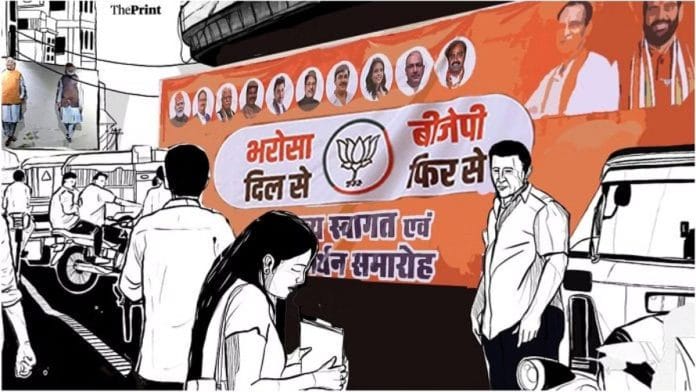 उनकी पार्टी का चुनावी नारा है— ‘भरोसा दिल से, बीजेपी फिर से’. नारे गढ़ने के मामले में यह पार्टी अपने लिए जो ऊंचा पैमाना निश्चित करती रही है उसके मद्देनजर यह तो काफी फीका लगता है. इसके अलावा इसमें कोई लय भी नहीं है. जैसे कि, एक बैंक्वेट हॉल में आयोजित एक मामूली-सी सभा के दौरान कुछ पार्टी कार्यकर्ताओं ने अलग से बातचीत में इस नारे के बारे में कहा, “तुक भी नहीं मिलती”.