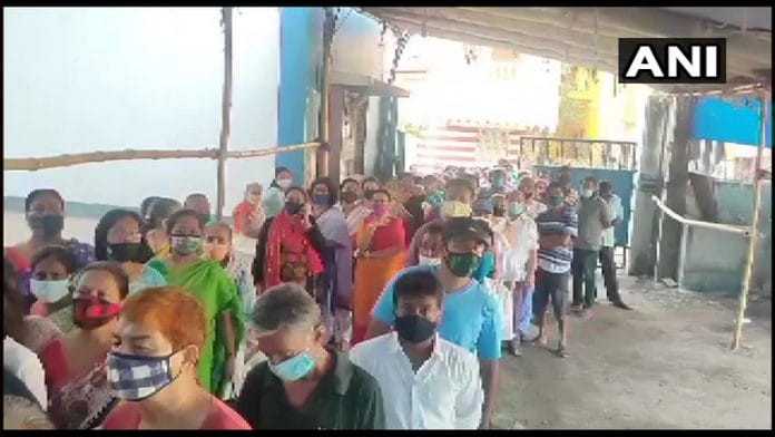 Voters queue outside polling booth 263 in Bardhaman South, in Phase 5 of the West Bengal assembly elections pic.twitter.com/LeRWhCmiEG