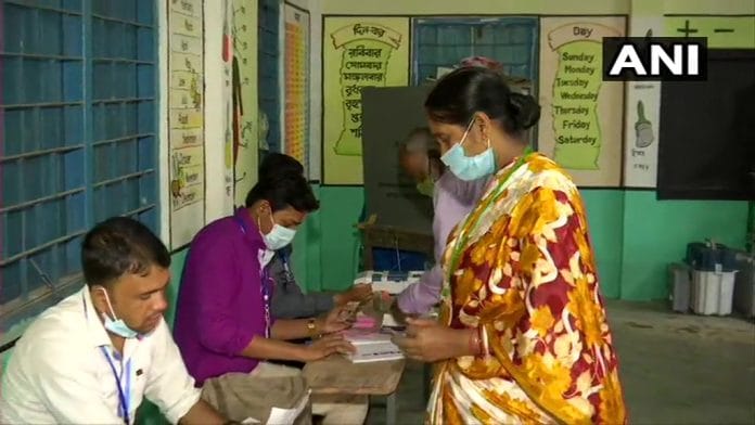 हावड़ा जिले में नौ सीटों, दक्षिण 24 परगना में 11, अलीपुरद्वार में पांच, कूचबिहार में नौ और हुगली में 10 सीटों पर कोविड-19 संबंधी नियमों का सख्ती से पालन करते हुए मतदान हो रहा है.