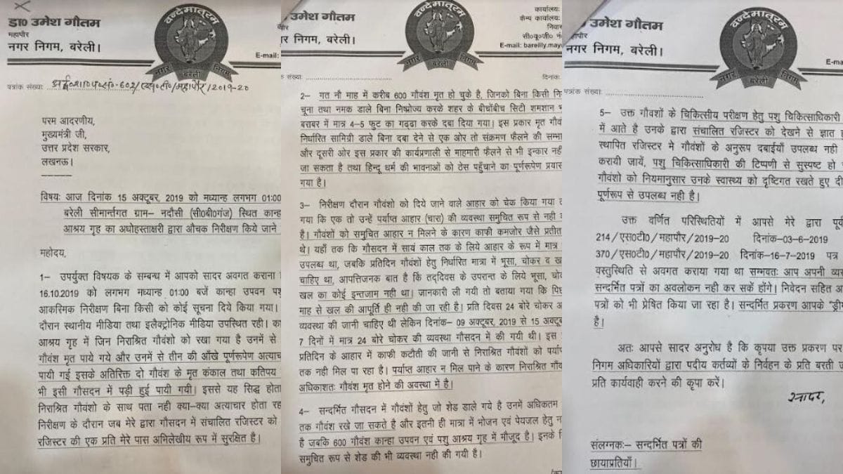 उनका यह भी आरोप है कि ‘बरेली स्थित श्मशान भूमि के पास चार से पांच फिट का गड्ढा करके बिना नियमों का पालन किए बिना दबा दिया गया. इससे आसपास संक्रमण फैलने की भी संभावना है. साथ ही ‘हिंदू भावनाओं’ को ठेस भी पहुंचाने का प्रयास है. कान्हा उपवन में न तो गोवंश के लिए जरूरी चारा उपलब्ध है और न ही दवाइयों की व्यवस्था है’. बरेली के स्थानीय अखबारों में लगातार गोवंश की मौत की खबर छप रही हैं.