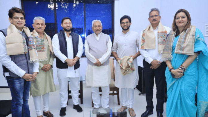 नई दिल्ली: शिवसेना नेता आदित्य ठाकरे और पार्टी सांसद प्रियंका चतुर्वेदी ने बिहार के डिप्टी सीएम तेजस्वी यादव की मौजूदगी में मुख्यमंत्री नीतीश कुमार से उनके आवास पर मुलाकात की.