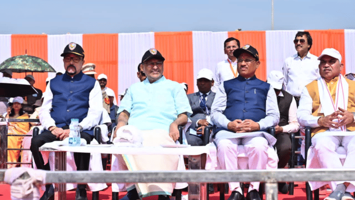 नवा रायपुर: छत्तीसगढ़ राज्य स्थापना के 25 साल पूरे होने के अवसर पर बुधवार को नवा रायपुर स्थित सेंध जलाशय के ऊपर भारतीय वायु सेना की प्रतिष्ठित एरोबेटिक टीम ‘सूर्यकिरण’ ने रोमांचक एयर शो का प्रदर्शन किया. कार्यक्रम में उप राष्ट्रपति सी.पी. राधाकृष्णन, राज्यपाल रमेन डेका, मुख्यमंत्री विष्णु देव साय और विधानसभा अध्यक्ष डॉ. रमन सिंह सहित हजारों लोग मौजूद रहे.