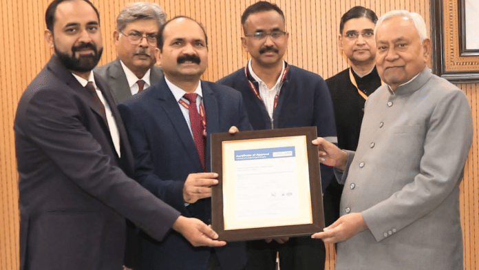 पटना: मुख्यमंत्री नीतीश कुमार को मंगलवार को 1 अणे मार्ग स्थित ‘संकल्प’ में इंडियन रजिस्टर क्वालिटी सिस्टम्स के प्रतिनिधियों ने अंतर्राष्ट्रीय गुणवत्ता मानक ISO 9001:2015 प्रमाणन का प्रमाण-पत्र भेंट किया. यह प्रमाणन बिहार सरकार के सामान्य प्रशासन विभाग द्वारा किए गए विभागीय सुधारों और नवाचारों के लिए प्रदान किया गया है. मुख्यमंत्री वर्ष 2005 से सामान्य प्रशासन विभाग के विभागाध्यक्ष हैं.