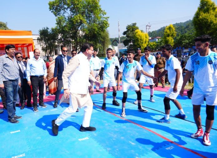 नई दिल्ली: मुख्यमंत्री पुष्कर सिंह धामी ने सोमवार को राजीव गांधी नवोदय विद्यालय, तपोवन में सांसद खेल महोत्सव का शुभारंभ किया. उन्होंने कहा कि प्रधानमंत्री नरेंद्र मोदी की प्रेरणा से हो रहा यह आयोजन खेल प्रतिभाओं को गांव से राष्ट्रीय स्तर तक पहुंचाने का बड़ा अभियान है.