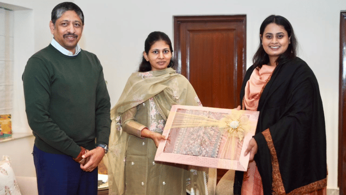 मुलाकात के अंत में खेल मंत्री श्रेयसी सिंह ने डॉ. मनसुख और रक्षा एन. खडसे को मधुबनी पेंटिंग से सुसज्जित साड़ी, अंग वस्त्र और बोधि वृक्ष का प्रतीक चिन्ह भेंट कर उनका अभिनंदन किया.