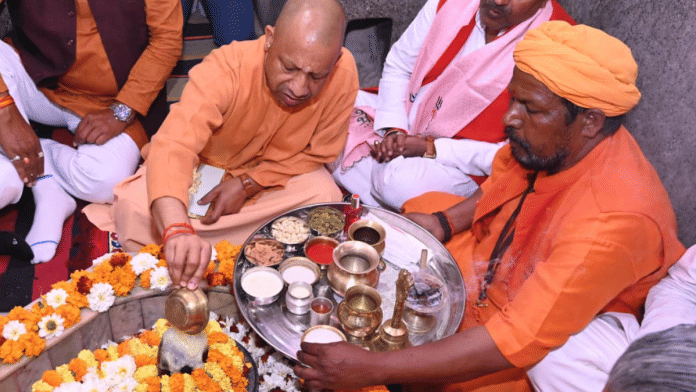 मुख्यमंत्री ने दुग्ध, दही, घी, मधु और शर्करा से पंचस्नान कर विधि-विधान से रुद्राभिषेक किया और सभी के कल्याण की कामना की.