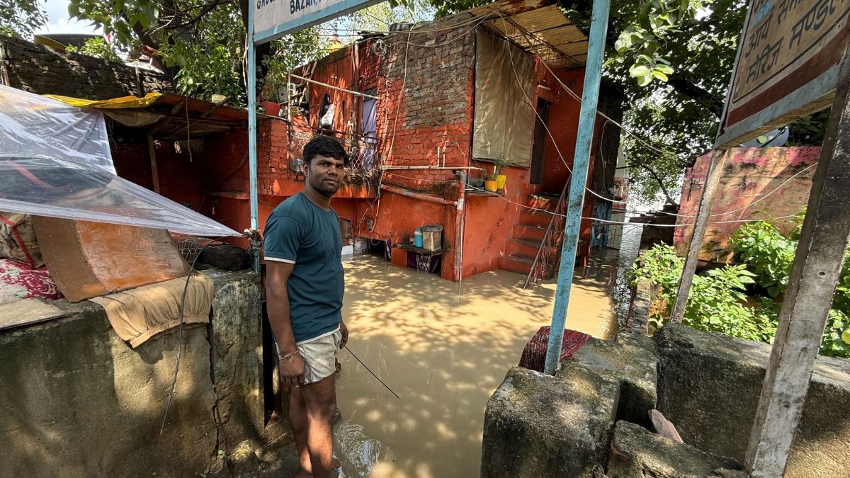 “मुझे कुछ खाया नहीं जा रहा, मैं बहुत टेंशन में हूं,” नीतू ने कहा. “मेरे बच्चे का पैर जल गया था और अब पानी की वजह से चोट और बढ़ गई है. 15 दिन हो गए—पानी आता-जाता रहता है. ऊपर से बारिश हो रही थी और नीचे से बाढ़.”