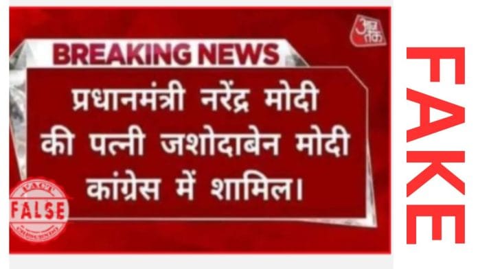 तथ्य-जांच के बाद हमने पाया कि, वायरल ग्राफिक्स फर्जी है. प्रधानमंत्री नरेंद्र मोदी की पत्नी जशोदाबेन के कांग्रेस में शामिल होने का दावा झूठा है.