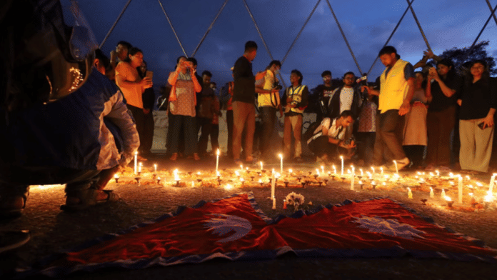 काठमांडू के बिजुलीबाजार में लोग दिवंगत आत्माओं की शांति के लिए मोमबत्तियां जलाने के लिए एकत्रित हुए | मनीषा मोंडल | दिप्रिंट