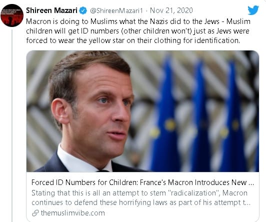 शनिवार को मज़ारी एक स्टोरी का लिंक शेयर करते हुए लिखा था, ‘मैक्रों वैसा ही मुसलमानों के साथ व्यवहार कर रहे हैं जैसा द्वितीय विश्वयुद्ध के दौरान नाजियों ने यहूदियों के साथ किया था.’